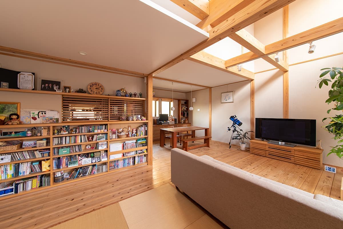 UA値0.3という非常に優れた断熱性能で、大きな吹き抜けや床下エアコンなど、家の中の全体に快適な空気が流れていくように設計されており、人にやさしい自然素材の心地よさも感じることができます。
