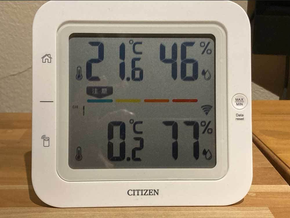 外が0度でもリビングは21.6度となっています。