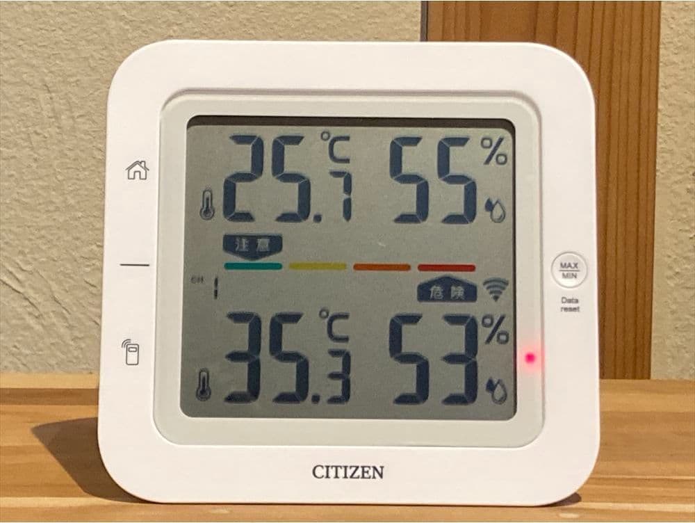下の画像は2024年8月25日の14時30分に計測した温度計です。2Fホールのエアコンを27℃に設定しいてる状態での気温となります。屋外の気温差と家の中の1階と2階の気温差をご確認いただければと思います。新潟の暑い夏の日でも、1台のエアコンで家のどこにていも温度差のない快適なエシカルハウスの家づくりをぜひ体感してください。