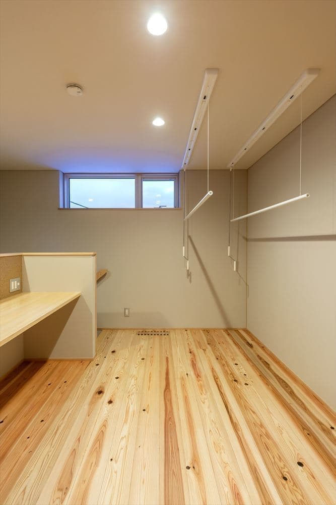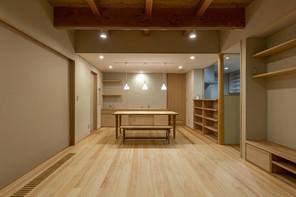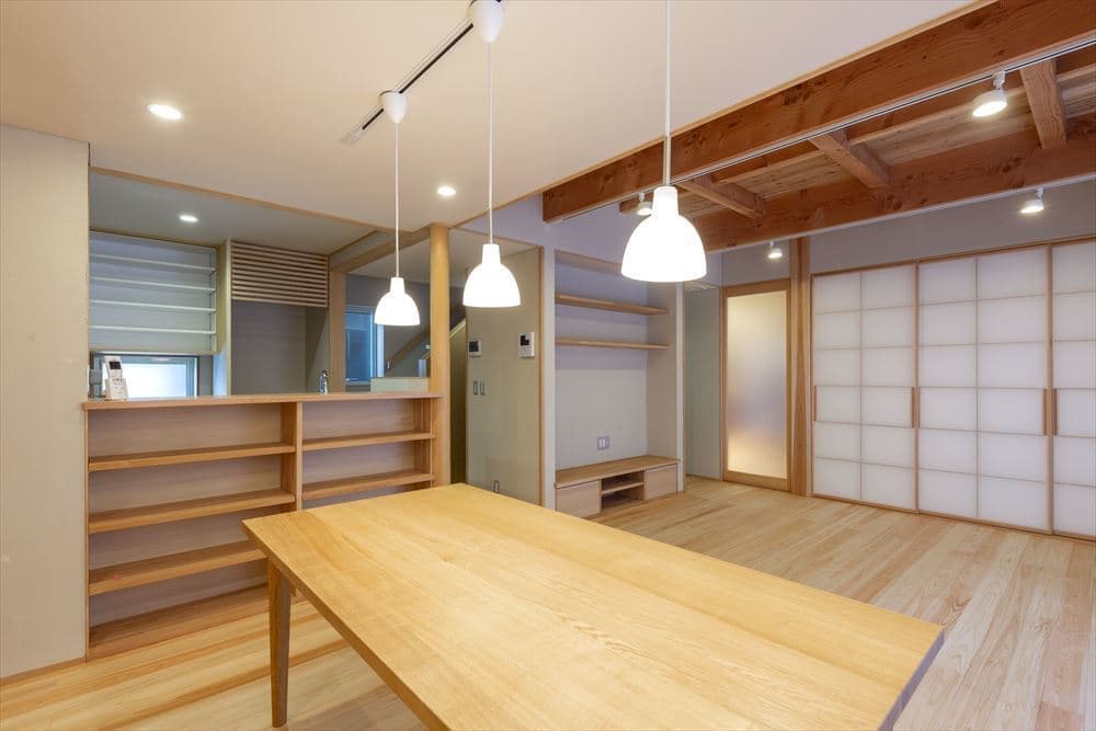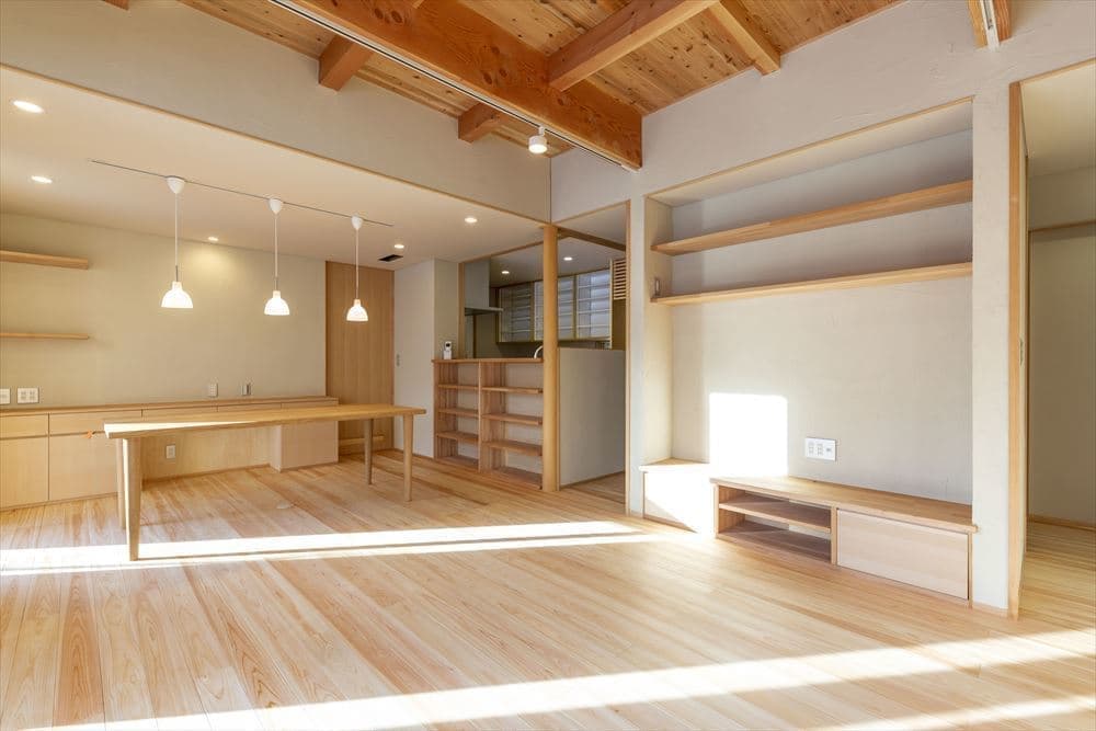 ヒノキや杉の無垢床のやさしい空間で、家事動線も考慮したプランニングで、家族4人が楽しく快適に暮らせる家となりました。
