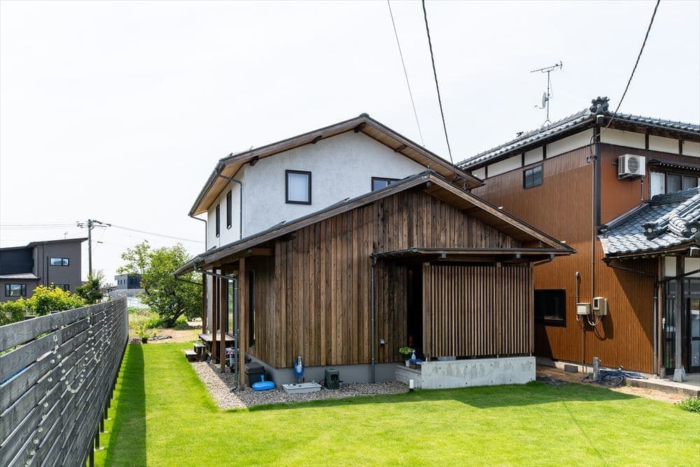 | 外壁 | モイス下地、そとん壁 杉板目透かし張りウッドロングエコ塗布 |