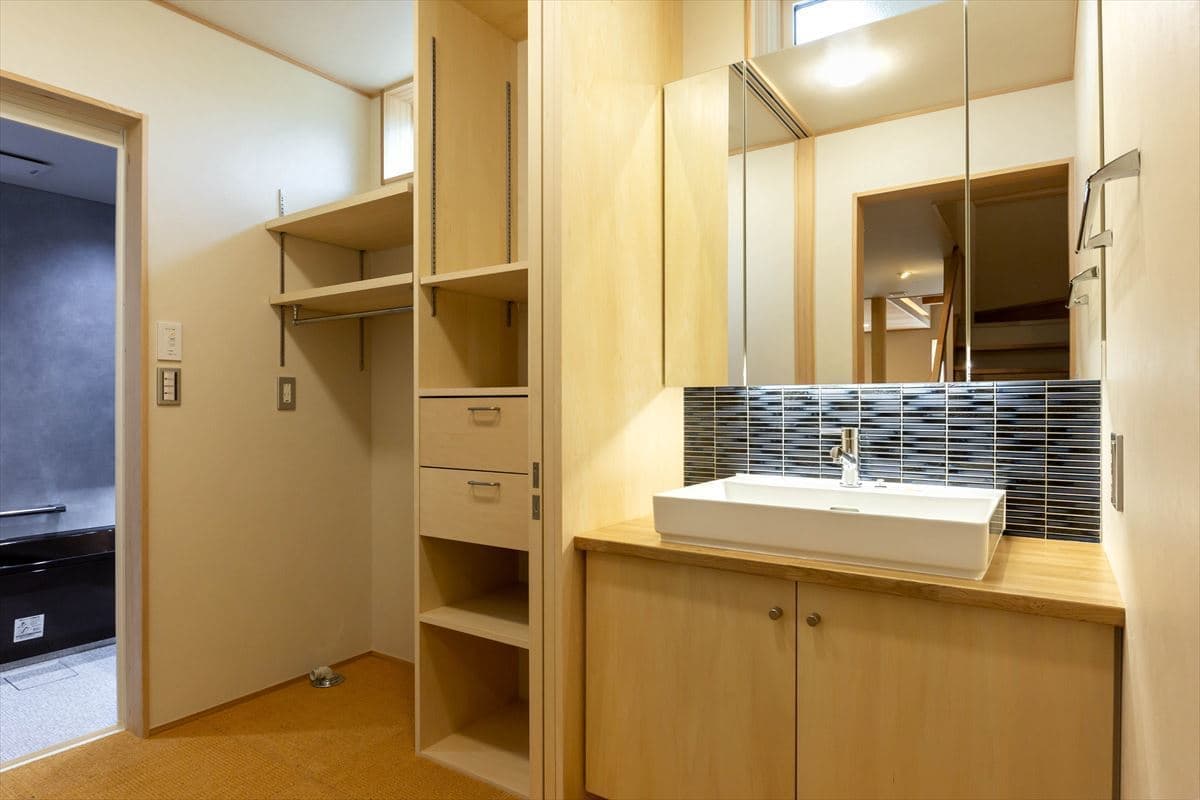 洗面台もオーダーメイドの造作で制作しています