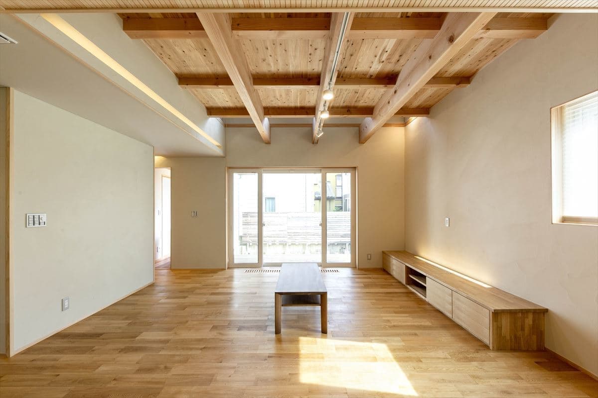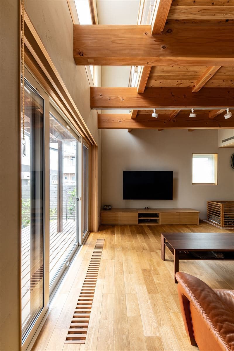 リビングは構造躯体をそのまま表しにしています