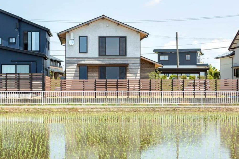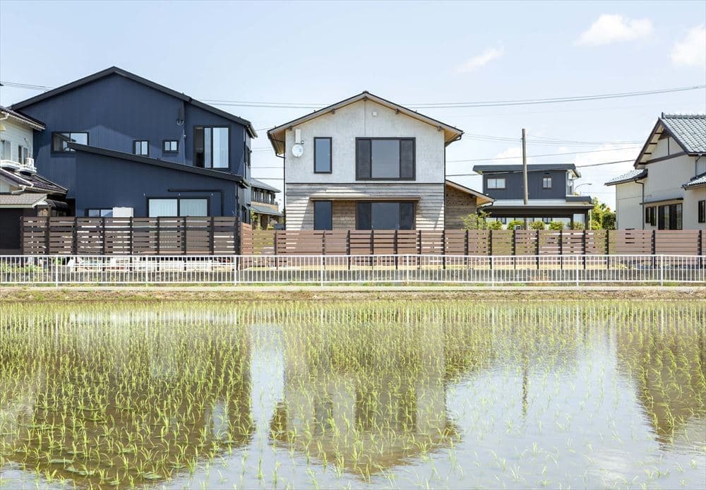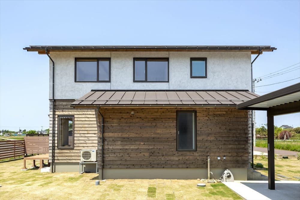 外観は切妻屋根のシンプルなフォルムで、外装に杉板とそとん壁というエシカルハウスらしいデザインです。